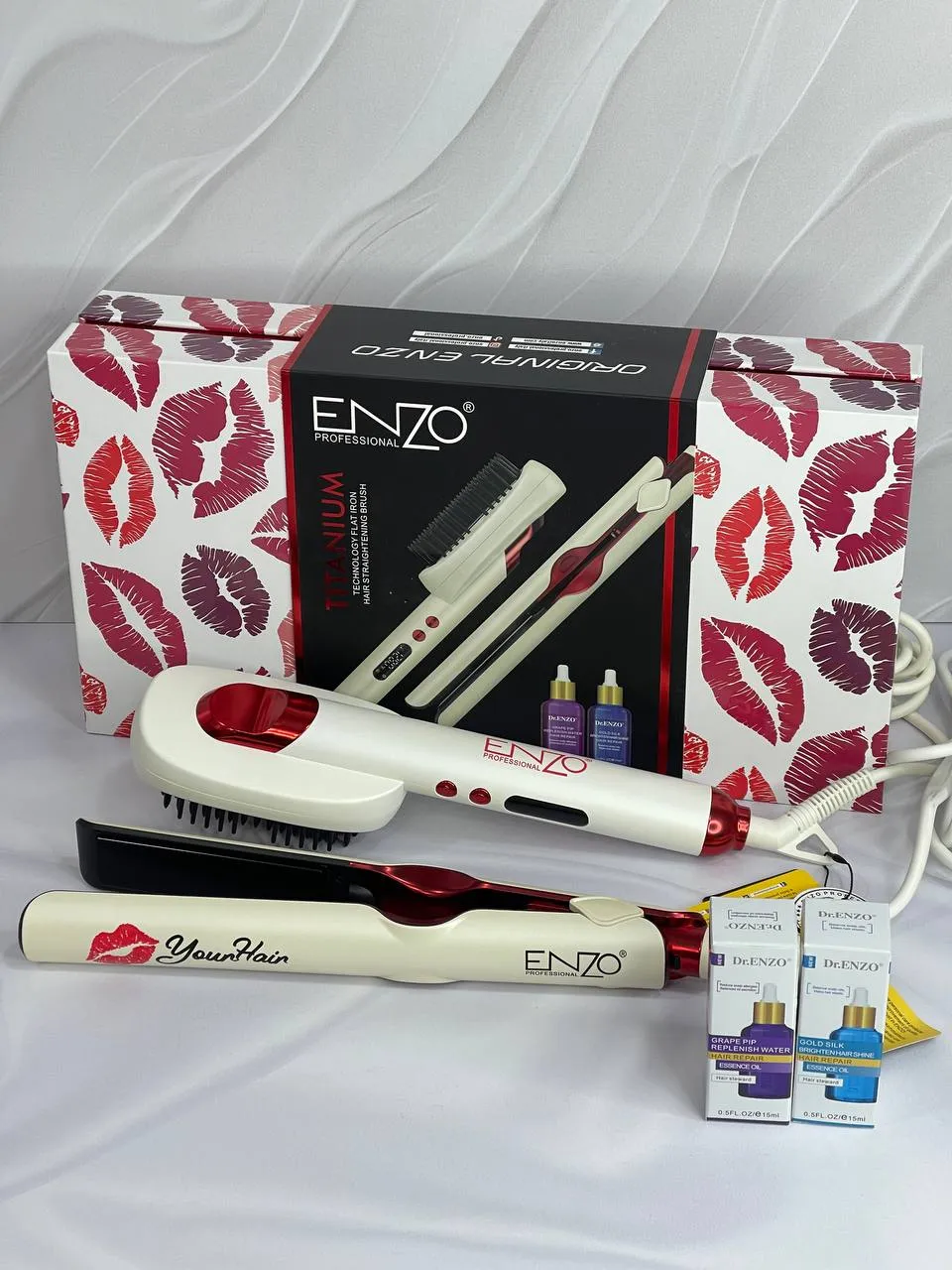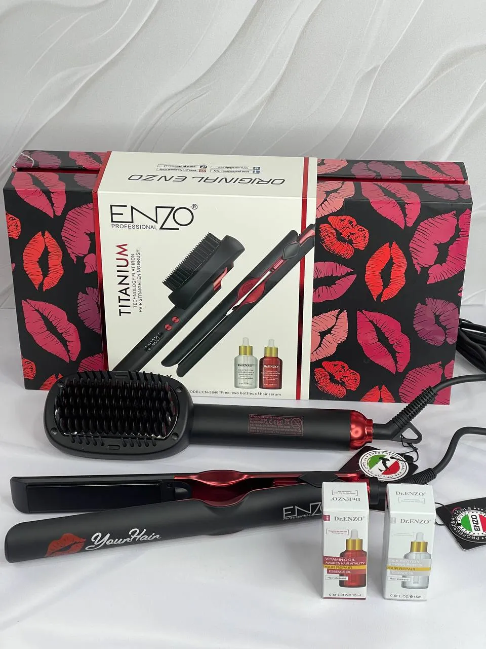 ENZO EN-3846 FLAT IRON and HAIR STRAIGHTENING BRUSH
